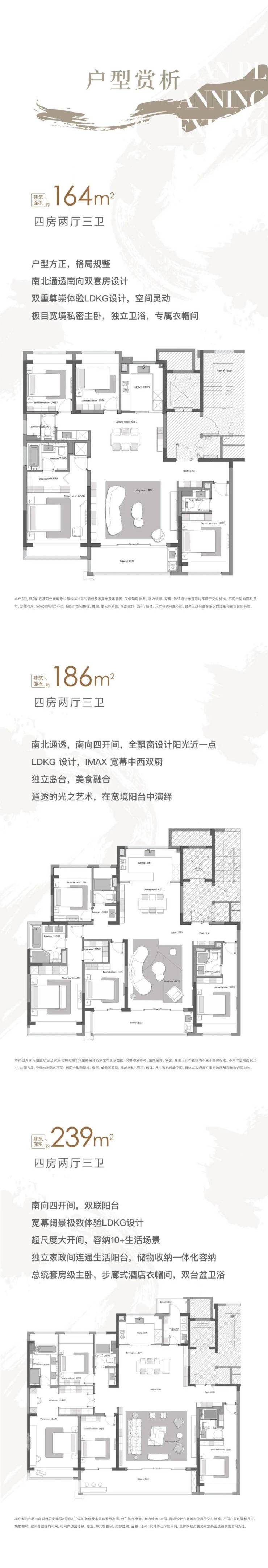 配置户型:建面约164㎡、建面约186㎡、建面约239㎡