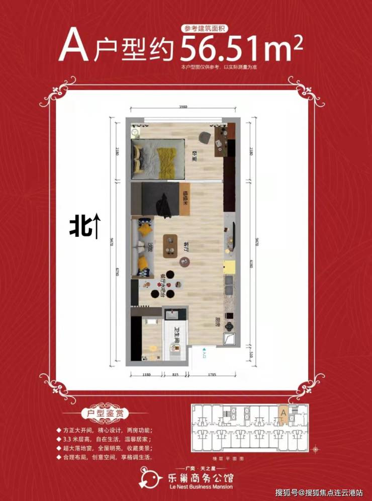 【在售面积】50㎡56㎡64㎡(一室一厅一卫)