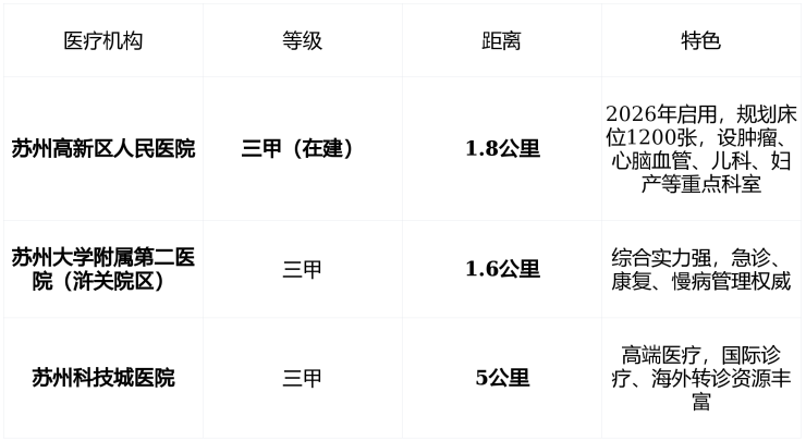 ✅ 在苏州高新区, 2公里内拥有2家三甲医院+1家在建三甲极为罕见 ,真正实现“ 小病不出社区,大病有靠山 ”。
