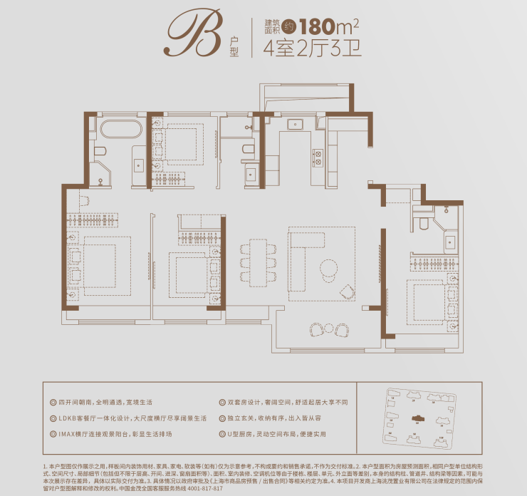 户型特点:四开间朝南,7.5米横厅;270°宽幕窗景直面百万方绿地;中西双厨设计;主卧卫浴面积达14㎡