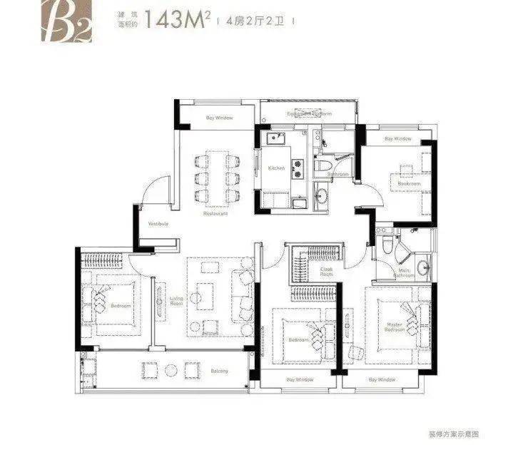 143㎡四房两厅两卫户型: