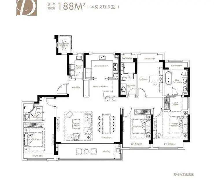 188㎡四房两厅三卫两厨户型图: