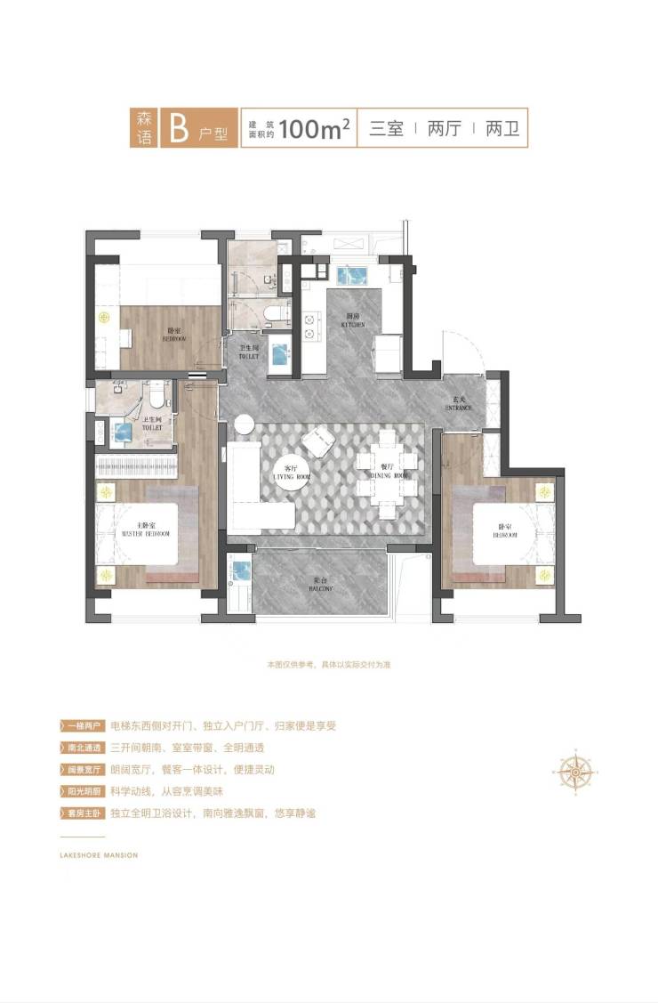 所有户型均采用"实用主义"设计理念,多开间朝南、南北通透,户型方正,空间利用率高