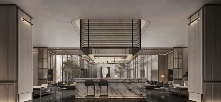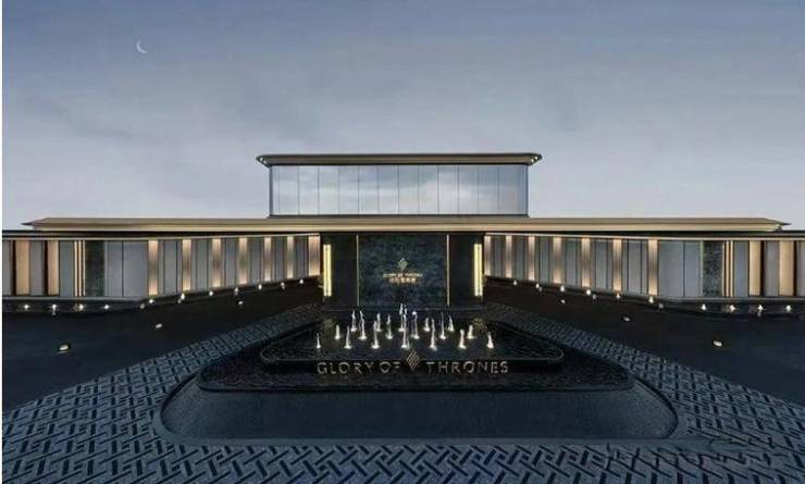 显赫门庭:约 80m 超大尺度的景墙以及蓝翡翠奢石照壁呈现眼前,给予你酒店落客式的尊享归家体验。