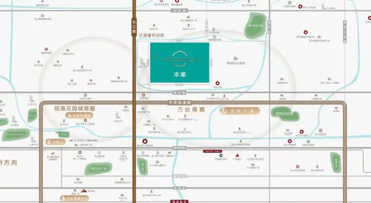 中环核心位置 :项目紧邻昆山中环北线,自驾15分钟可达昆山南站,30分钟通达苏州园区,45分钟直达上海虹桥枢纽