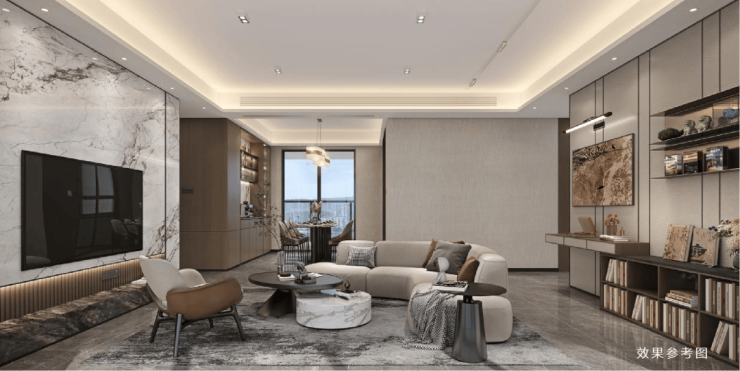 LDKBG五维交互的生长力。在客厅/餐厅/厨房/阳台/空中花园一体化的空间基础上,创新性加入空中花园维度,形成“动区互联+生态渗透”的五维交互体系。通过洄游动线设计,让五大空间形成有机整体,既保持功能独立性,又能根据生活场景自由重组。