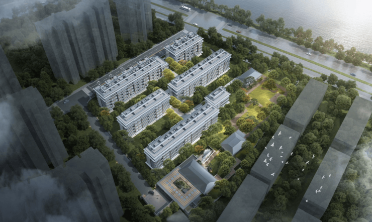 “取欢仁智乐,寄畅山水阴。”建筑风格巧借寄畅园的造园手法,将其布局方式和精神文脉植入其中。以河畔生活的惬意闲适为调,以老南长地缘文化为脉,外揽河景,内造园景,打造都市里的静谧度假感和现代东方诗意栖居的隐奢感,造就舒适宜人的城市栖居地。