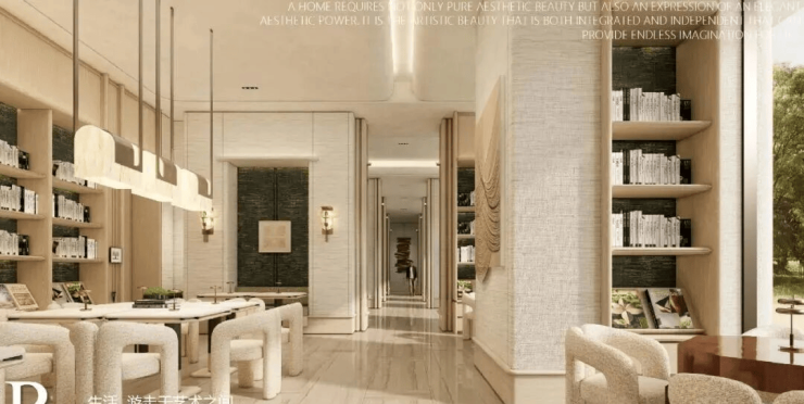 项目打造现代海派风格的外立面,线条简洁大气; 社区规划六重生活体验空间,从酒店式落客入口、镜面水庭到美学花园,旨在将高端酒店的奢享基因融入日常生活。