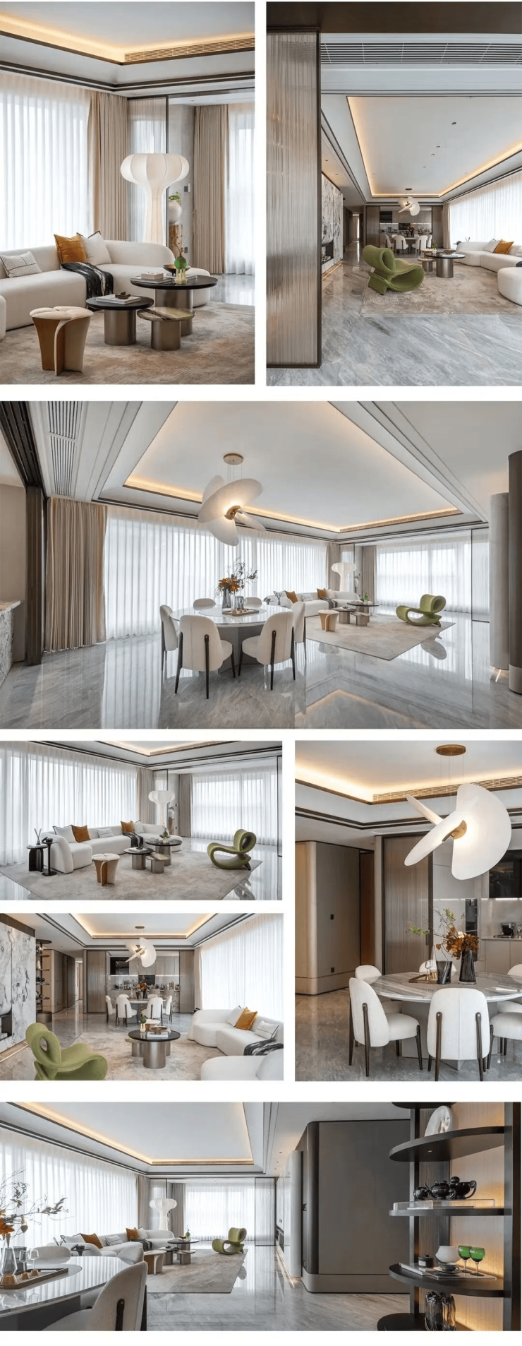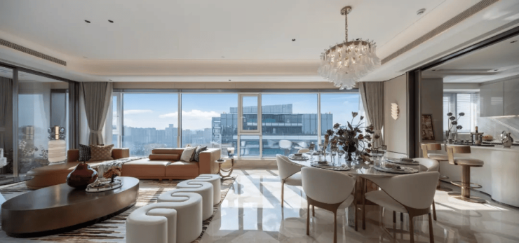 项目由GAD建筑事务所、邱德光(室内)、琚宾(景观)等设计大师团队联袂打造,建筑风格融合了ART DECO艺术与现代美学。产品设计注重空间感和奢华体验,层高达到3.6米,并配备270°巨幕落地窗。主力户型如308平方米的“云座”户型设计了艺术长廊,而311平方米的“凤栖”户型则拥有约120平方米的LDK一体化方厅,功能划分明确。