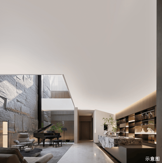 如果说地上花园是自然的馈赠,那么地下含夹层的创新空间则是对生活尺度的极致拓展。约6m的挑高设计,让空间摆脱了传统地下室的压抑感,实现了垂直方向的自由生长。