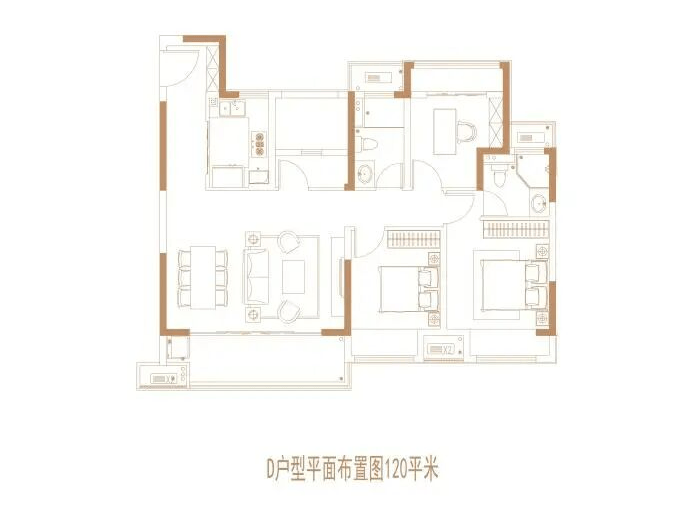 120㎡四居:大横厅+南向双飘窗,面积利用率高
