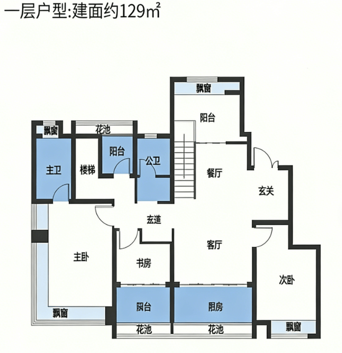 主力户型:98㎡三房、108㎡三房、126㎡四房、129㎡花园洋房得房率高达80%–82%全明通透,南北对流,无遮挡