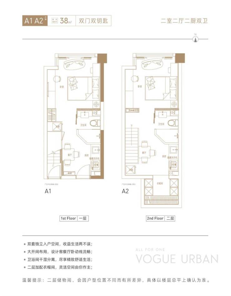户型:双门双钥匙、LOFT,二层配置储藏间