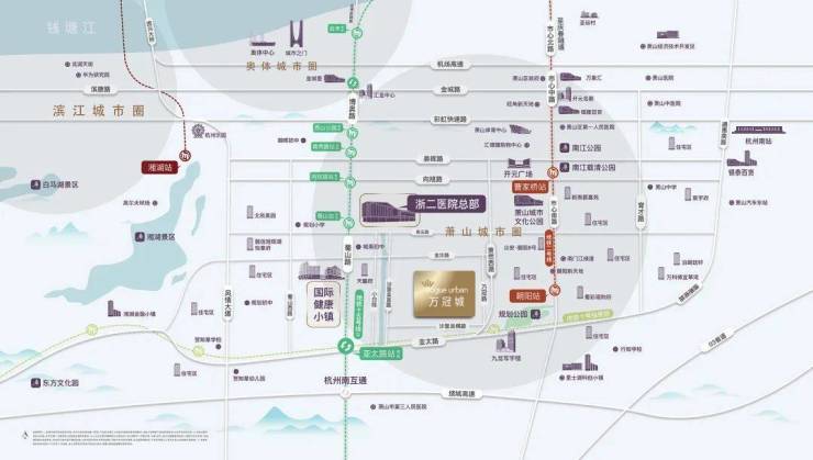 万冠城位于南部新城核心,北靠浙二总院,东临市心路,开元广场,银泰百货,西连湘湖风景度假区,与风情大道和彩虹快速路贯通,直达奥体滨江,拥有多维立体交通,配套丰富多元,集萃城市优质资源。☎️VIPline:4009983632【售楼热线】☎️