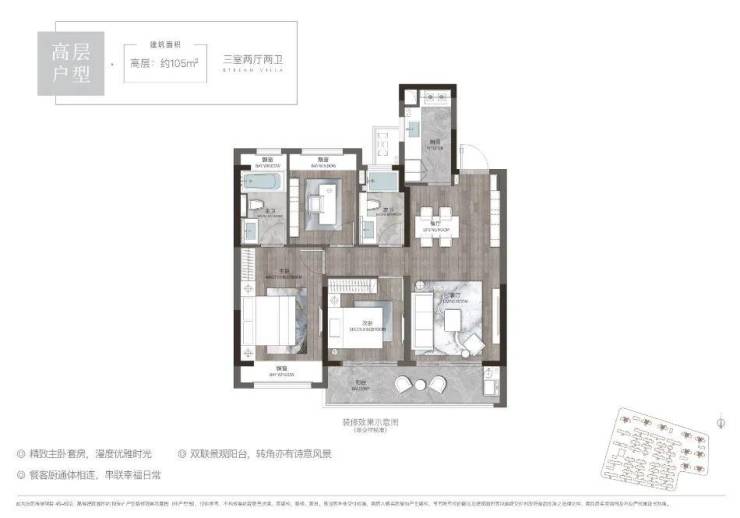 高层105平户型:三室两厅两卫,总价150-165万