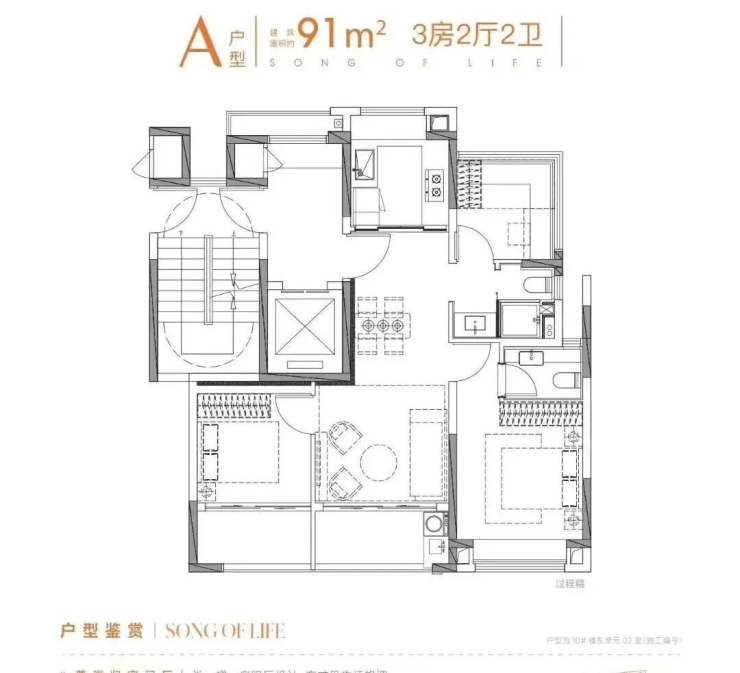 主力户型 :建面约 91–139㎡ ,全为 3–4房改善型产品 ,无“伪刚需”设计,户户南北通透,卧室全朝南。