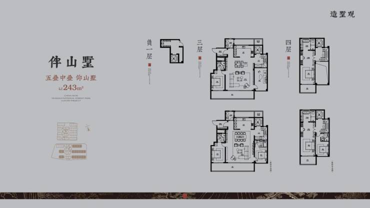 五叠别墅:建面约243-423㎡,精装均价约43200元/㎡,套均1280万元