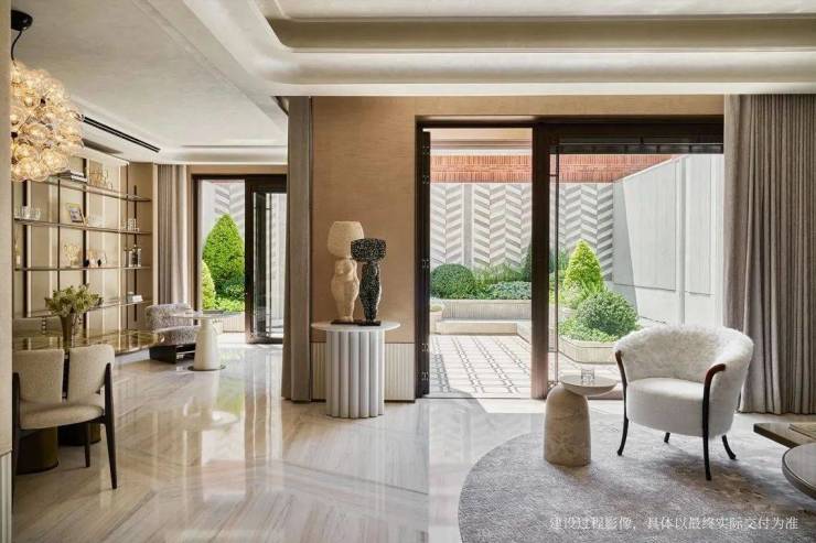 步入约260㎡样板间,奢华大气的空间叙事即刻令人惊艳。设计师采用大开间布局配合高窗墙比设计,在客餐厅区域创造出“思想共振场”——这里不仅是社交空间,更是光影与思想共舞的容器。