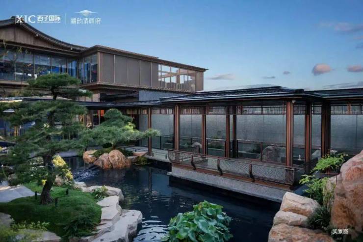 项目园林以“五进礼序”为魂,设水榭、曲廊、听风亭、观鱼池、竹径、赏月台,无围墙式归家动线,推窗见湖,步步皆景;