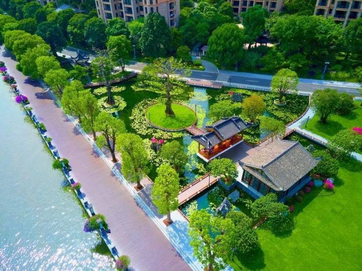 园林设计:独创“一岛移动”水景园林,4000㎡无界水景,宅间水系循环,增强景观灵动性