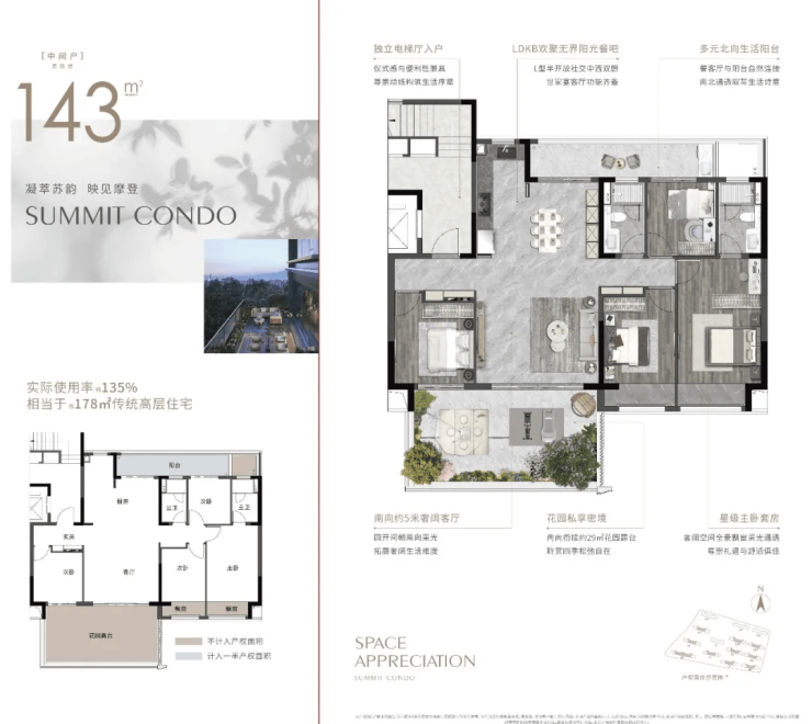 得房率优:得房率75%,197㎡大平层配备双卫、独立玄关与宽景阳台,空间尺度媲美改善型大宅。