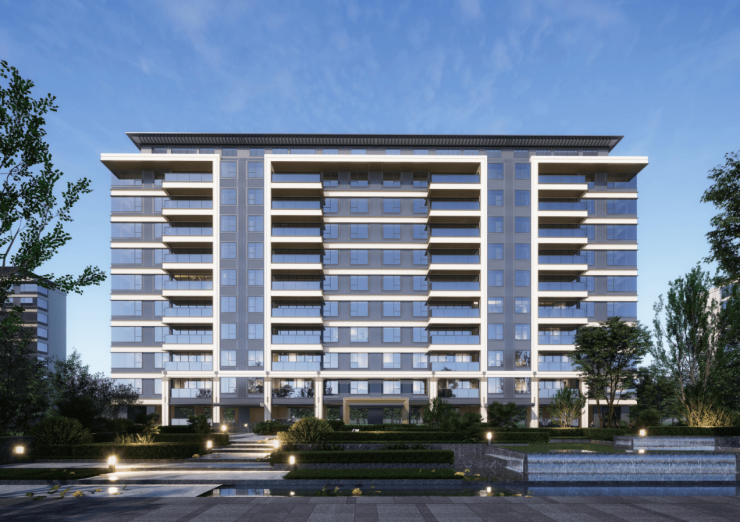 建筑立面:铝板、石材、真石漆等高端材质,单元门头庄重典雅