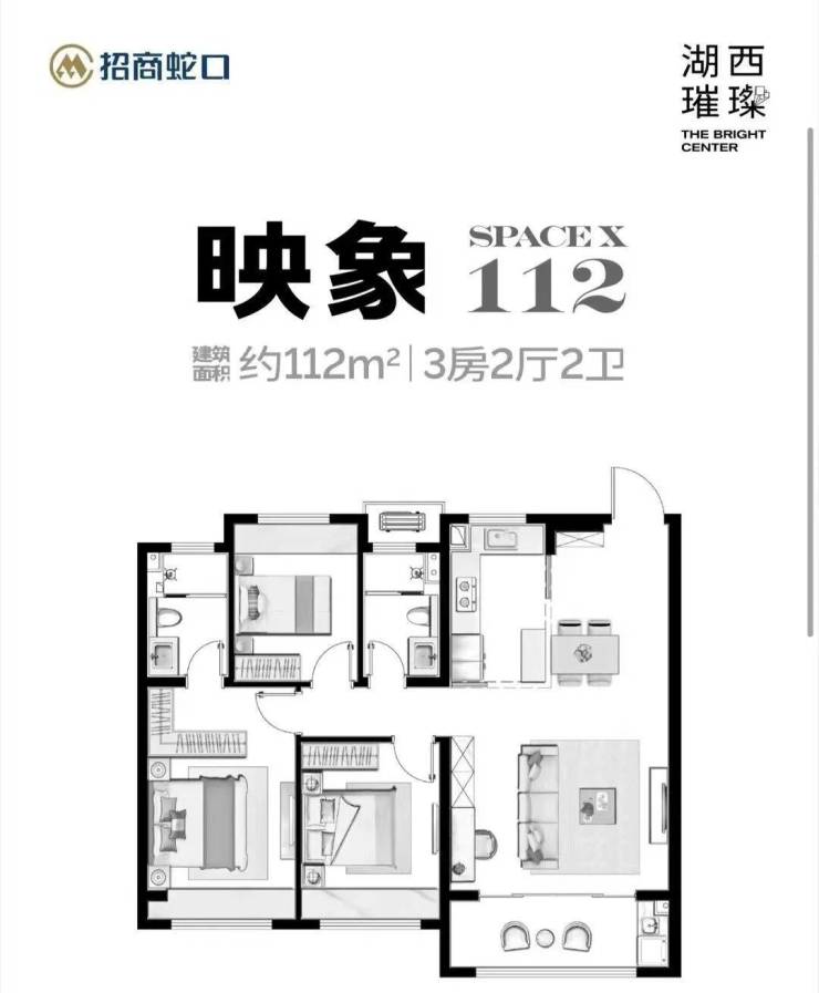 目前,湖西璀璨卖得最火的户型,就是建面约112㎡3房2卫。