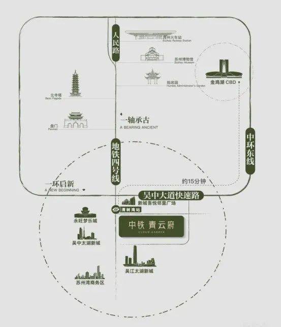 ◎出行中轴:轨交4号线坐拥9大换乘点,合计串联7条地铁、3座高铁站(苏州北站、苏州站、苏州南站),约半小时畅达全市。