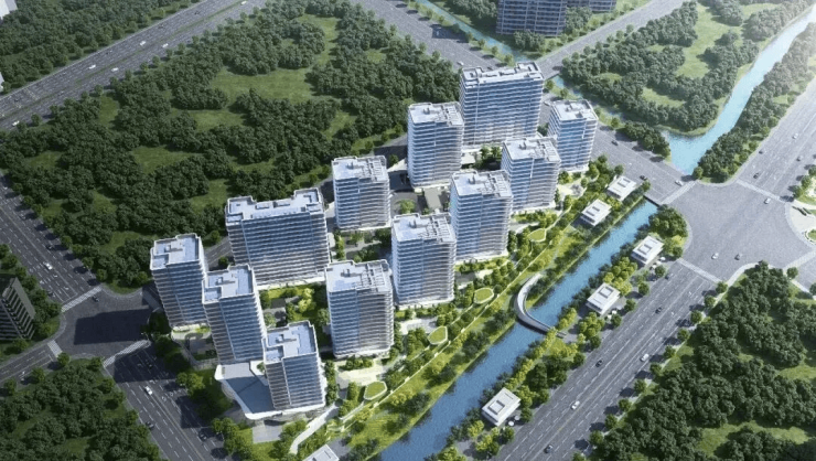 外立面设计:以“站立的江潮”为灵感,采用双曲面石材与蓝灰色LOW-E玻璃组合,公建化设计搭配超高窗墙比,兼具美观与实用性。