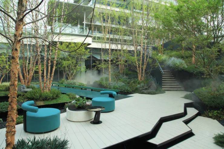 入户庭院与建筑的有机融合,消弭了建筑与自然的界限,重构了人居与自然的互动范式。这种 “可参与的自然” 突破传统景观的观赏距离,让苔藓萌发的微妙、鸟类栖息的生机、光影流转的韵律,都化作可触摸的生活诗篇。