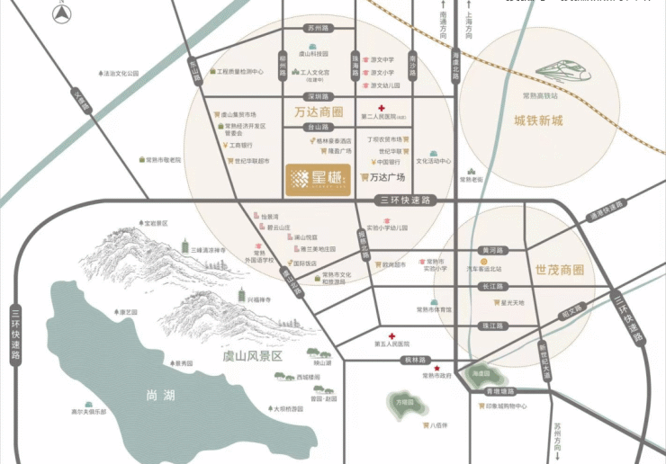星樾名筑所在的城北片区是常熟热门置业板块,以万达广场为中心向四周发展。该区域近年来发展迅速,配套日益完善,生活氛围成熟