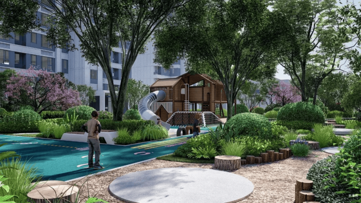 绿化率达37%,社区内部规划“一环两轴九大空间”,包含约300米星空夜跑道、童趣乐园、林下会客区等全龄化活动设施,营造生态宜居环境 。