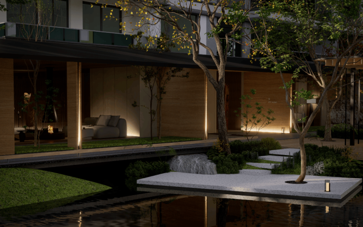 半岛园林式造景,与江河相得益彰,形成出入皆臻境的江河生活,10大丛林+度假场景体系化落位,如水流动线相连,将生活的本真意义还原。