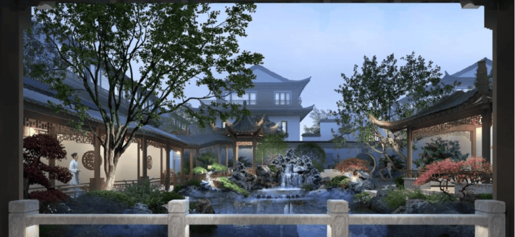 景观设计:约20万方中式园林,规划“一带一街五园多节点”中央景观轴,融合红梨湖历史文脉