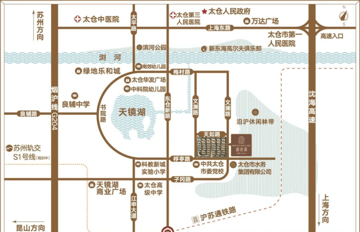 轨交 :紧邻 沪苏通铁路太仓南站 , 20分钟直达上海虹桥 ,通勤高效。