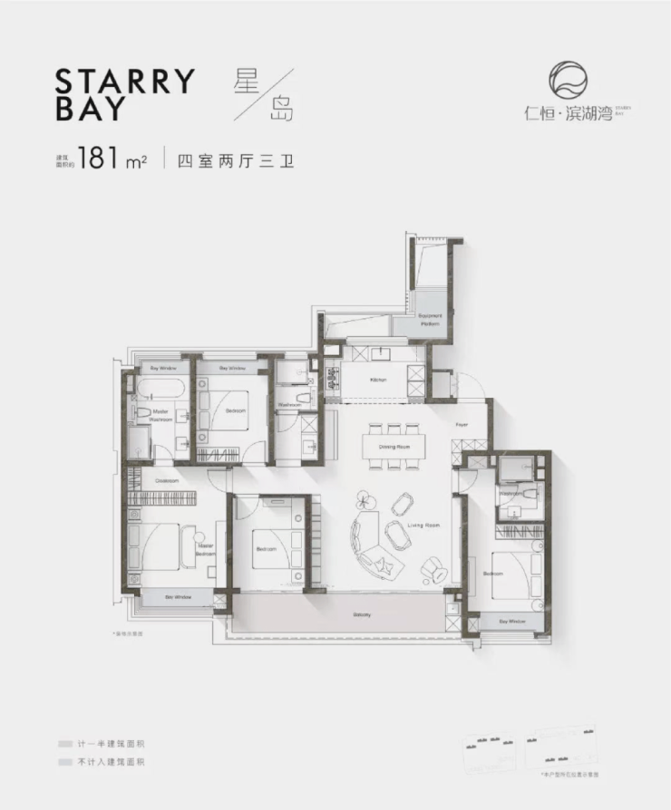 仁恒滨湖湾4008083612一共打造三大主力户型,分别为建面约156㎡、181㎡、222㎡,清一色都是改善级大平层!