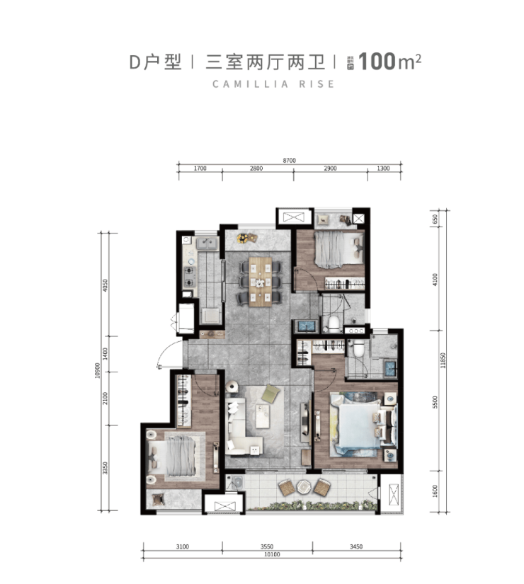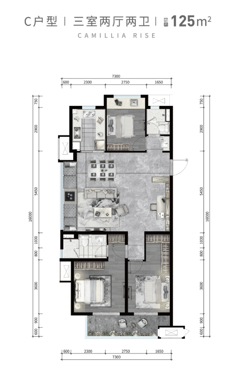 3室2厅2卫:98㎡(约157万)、100㎡(约160万)、125㎡(约200万)