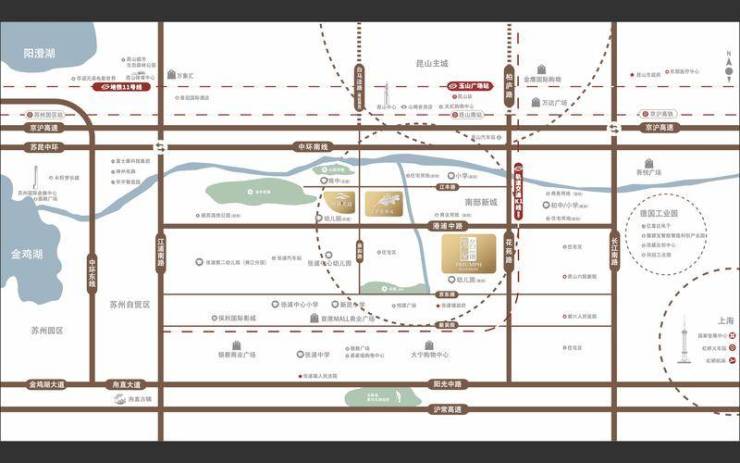 轨道交通:规划中的地铁K1线(连接苏州轨交11号线),昆山南站直线距离约6.5公里