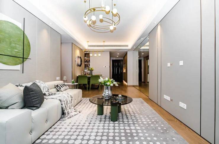 餐客厅一体:约5.6米阔尺横厅设计,居家待客更显从容