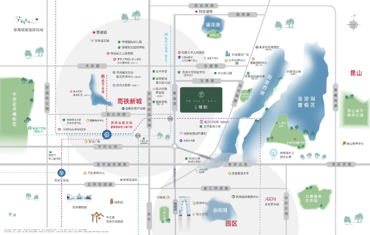 中环北线、苏州北站高架路、阳澄西湖第三隧道(在建)、常台高速等路网交错,直达姑苏古城区、园区等城市板块,执掌城市繁华版图。