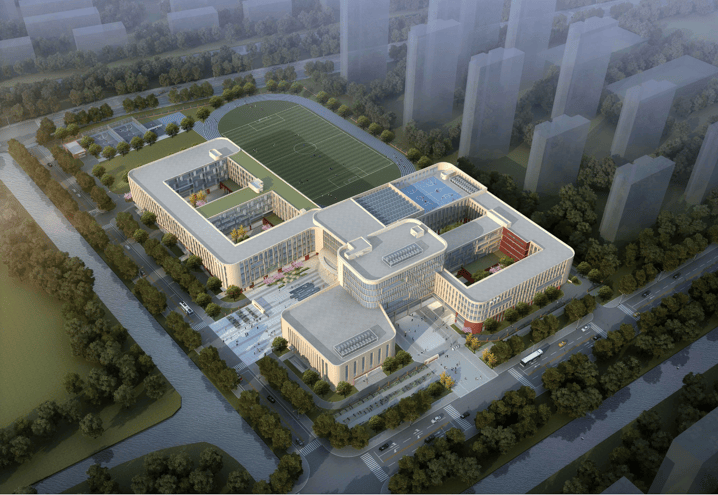 项目规划建设8轨72班 (小学部8轨48班,初中部8轨24班,另预留15个普通教室),今年9月正式投入使用。预留二期占地面积约26.2亩,总建筑面积约1.47万平方米。