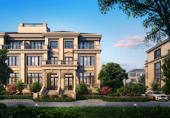 联排别墅采用法国古典主义建筑风格,建筑面积约3.8万方。