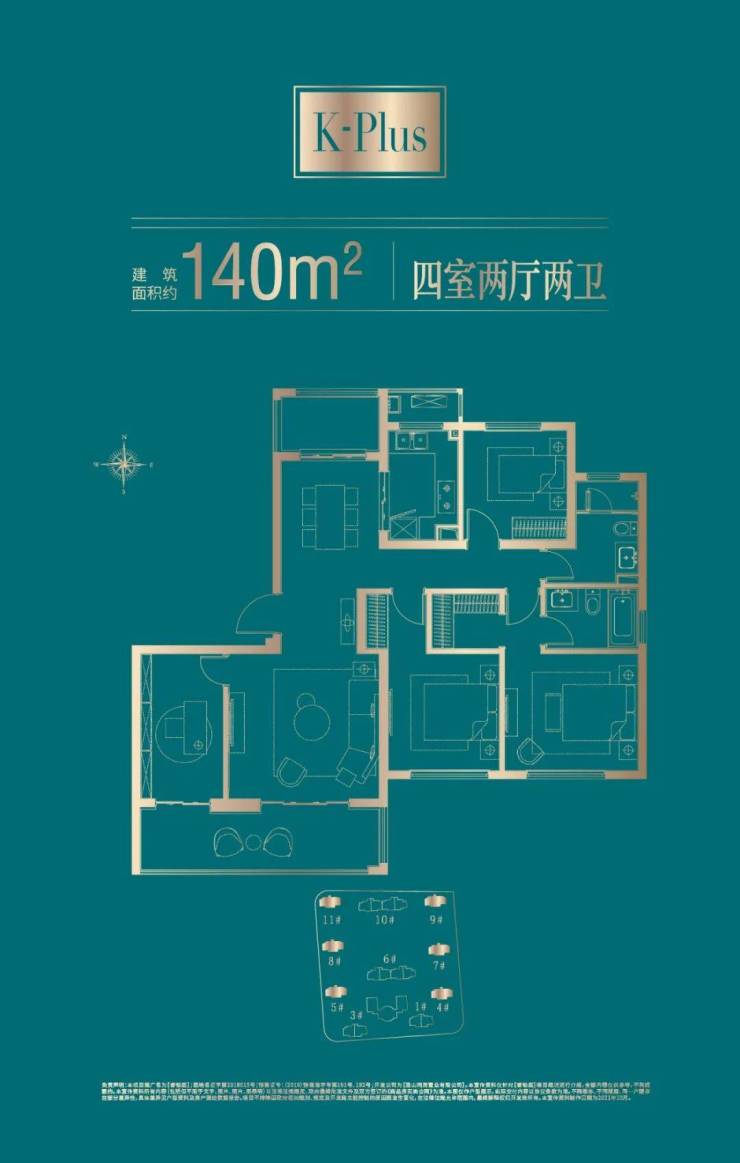 140㎡四居室:四开间朝南,南北双阳台设计,总价约308万起