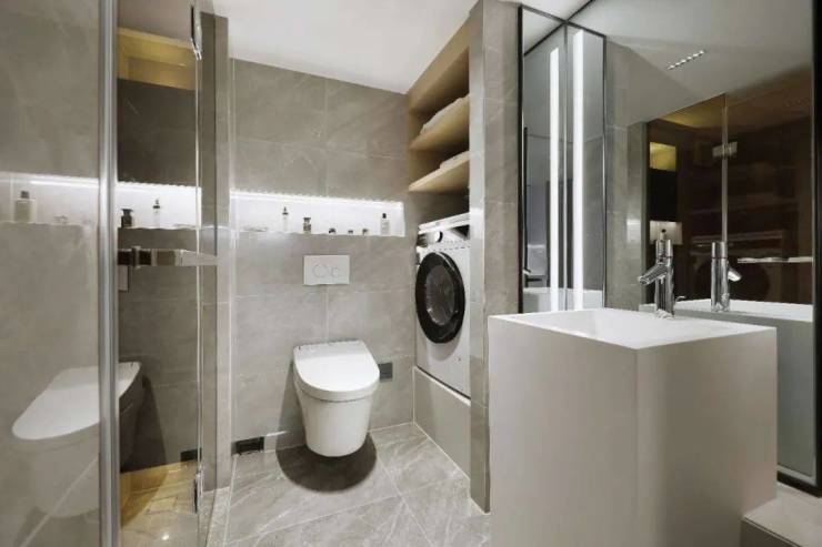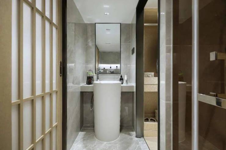 约61㎡两房为例,进门是干湿分离的卫生间,让小户型也有了更多的使用场景。