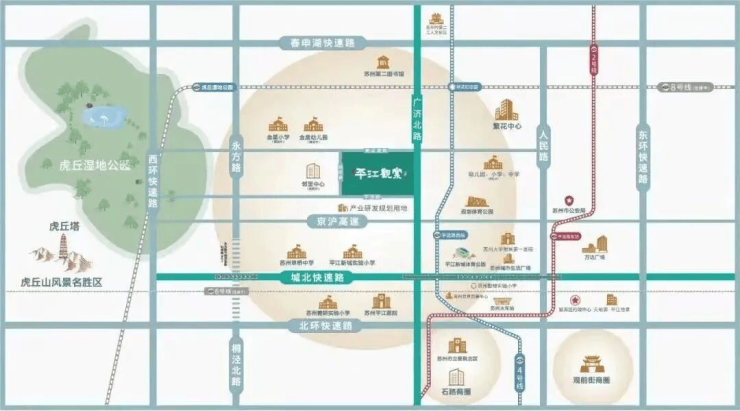 生态环境:靠近虎丘湿地公园、平江新城体育公园,日常休闲去处众多。