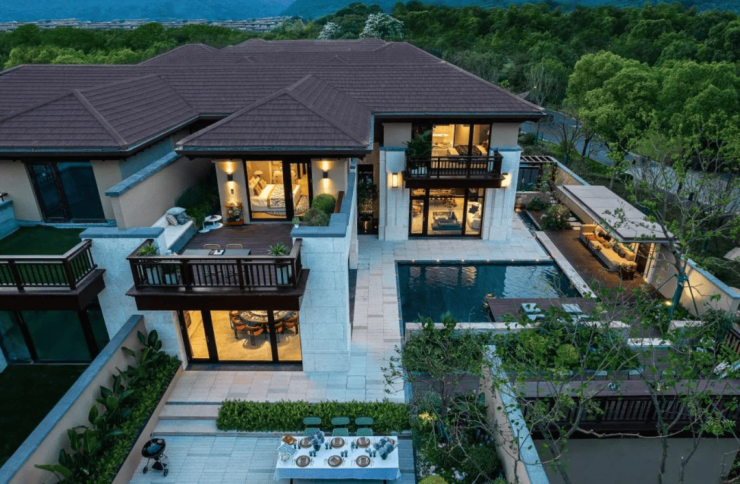 建筑风格独特:采用“廊亭檐院”传统风格,配备四重庭院、270°环景客厅及十大类六十余项精装细节,营造出浓郁的中式居住氛围。