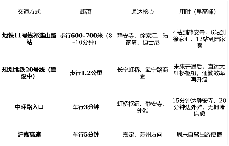 从项目出发, 步行10分钟上地铁,3分钟上中环 ,早高峰通勤效率优于普陀区90%新盘。
