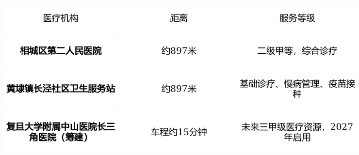 💉 社区医疗覆盖完善,日常小病不出小区,大病有三甲托底。