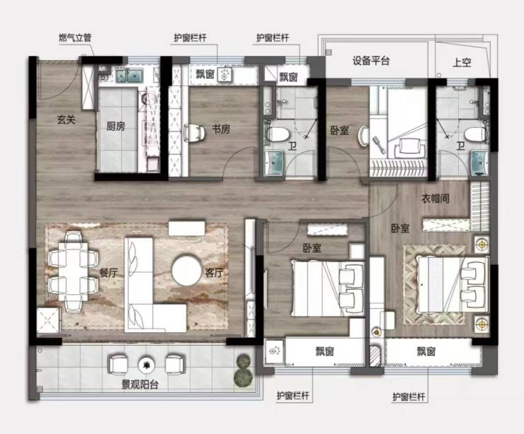 三室两厅两卫3室2厅2卫98m2