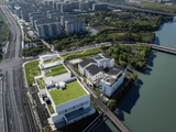 项目一期已建成,实景呈现法式纯白建筑与铝板外立面,品质可见。